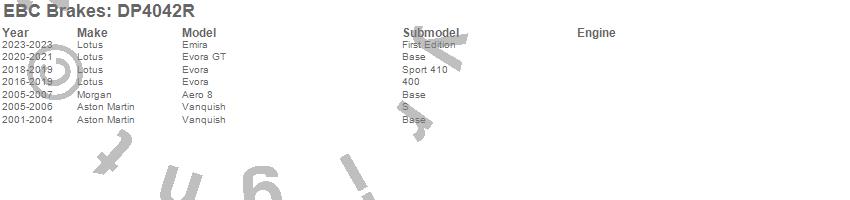 Below is an abreviated list of applications for the Yellowstuff Street And Track Brake Pads. Aero 8, MP4-12C, Vanquish, Aston Martin, McLaren, Morgan, 2014, 2013, 2012, 2011, 2007, 2006, 2005, 2004, 2003, 2002, 2001 more…