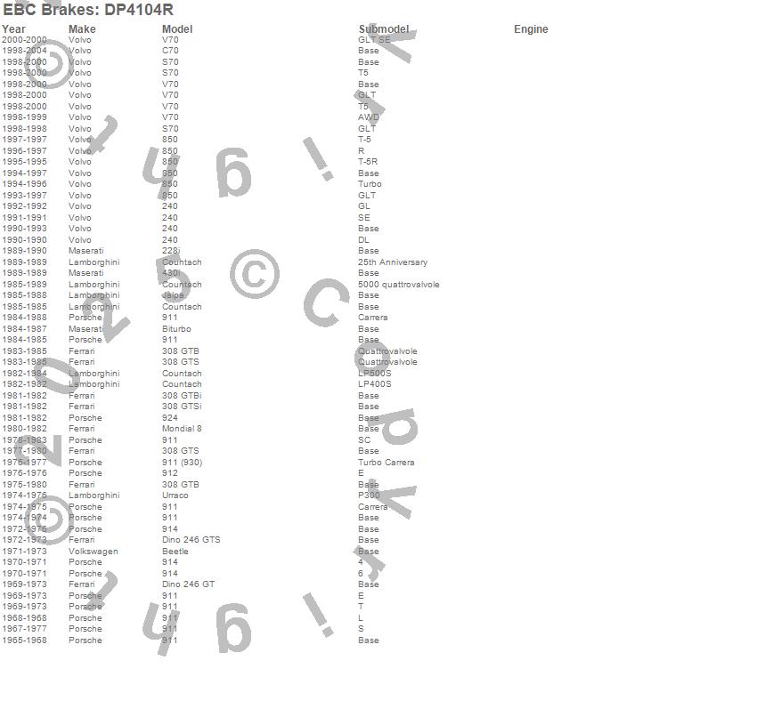 228i, 240, 308 GTB, 308 GTBi, 308 GTS, 308 GTSi, 430i, 850, 911, 912, 914, 924, Biturbo, C70, Countach, Dino 246 GT, Dino 246 GTS, Jalpa, Mondial 8, S70 more…