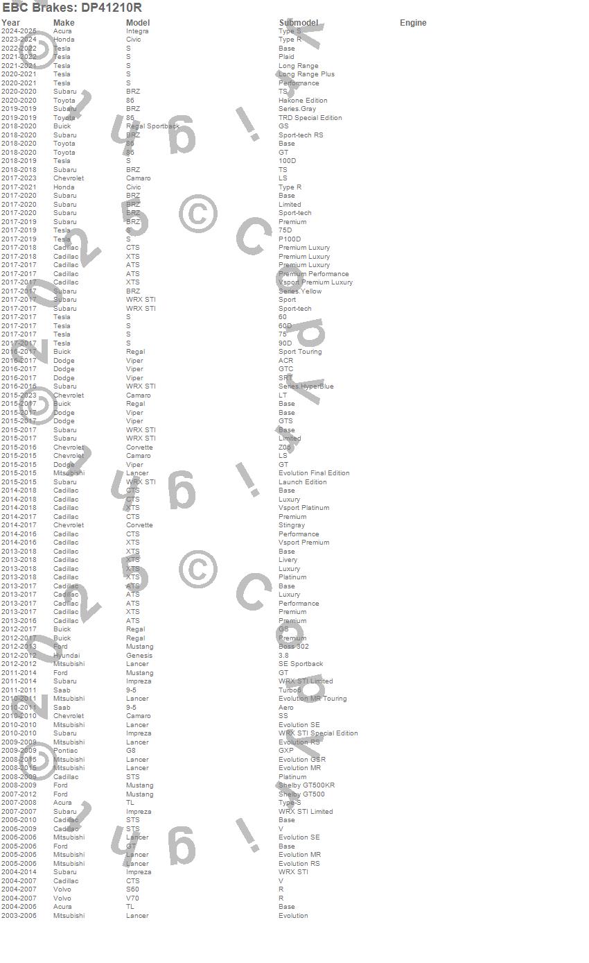 Below is an abreviated list of applications for the Yellowstuff Street And Track Brake Pads. 9-5, ATS, Camaro, Corvette, CTS, G8, Genesis, GT, Impreza, Lancer, Mustang, Regal, S60, STS, TL, V70, XTS, Acura, Buick, Cadillac more…