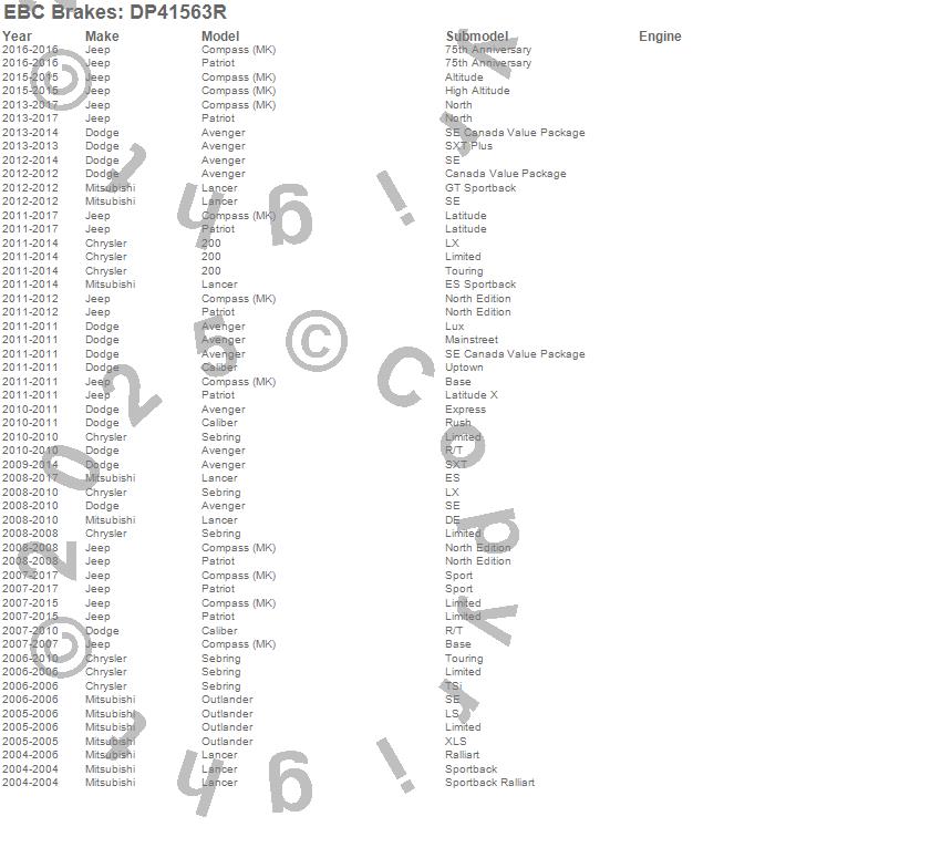 Below is an abreviated list of applications for the Yellowstuff Street And Track Brake Pads. 200, Avenger, Caliber, Compass, Lancer, Outlander, Patriot, Sebring, Chrysler, Dodge, Jeep, Mitsubishi, 2014, 2013, 2012, 2011, 2010, 2009, 2008, 2007 more…