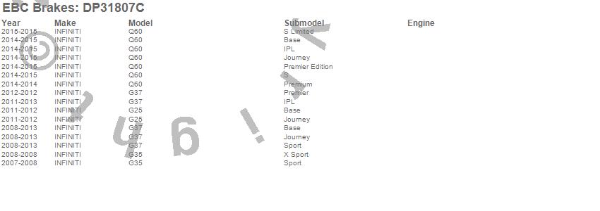 Below is an abreviated list of applications for the EBC Redstuff Ceramic Low Dust Brake Pads.