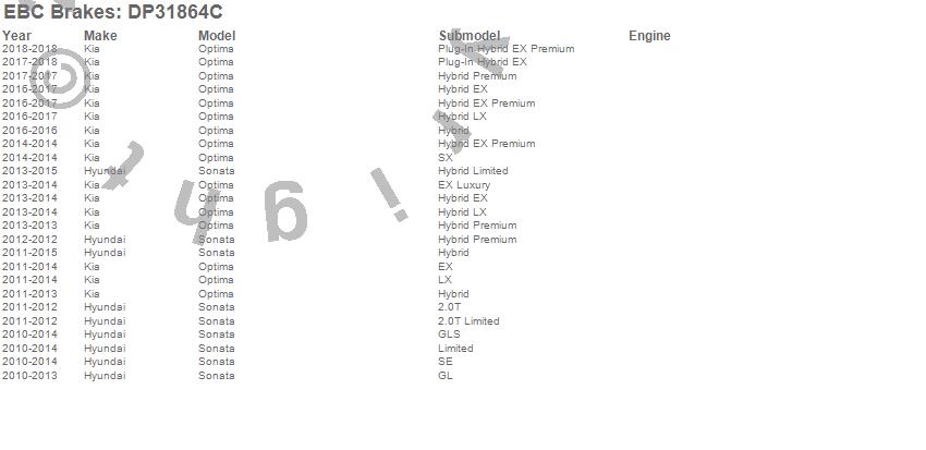 Below is an abreviated list of applications for the EBC Redstuff Ceramic Low Dust Brake Pads.