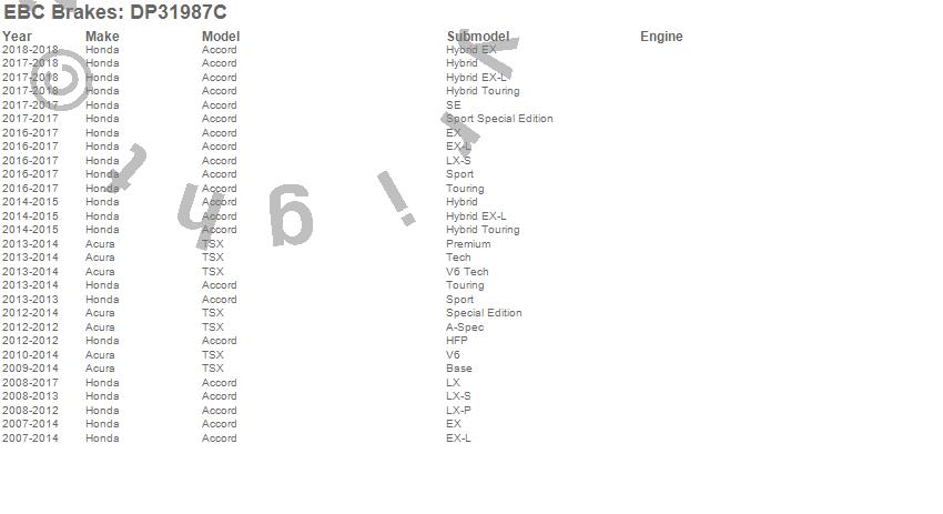 Below is an abreviated list of applications for the EBC Redstuff Ceramic Low Dust Brake Pads.