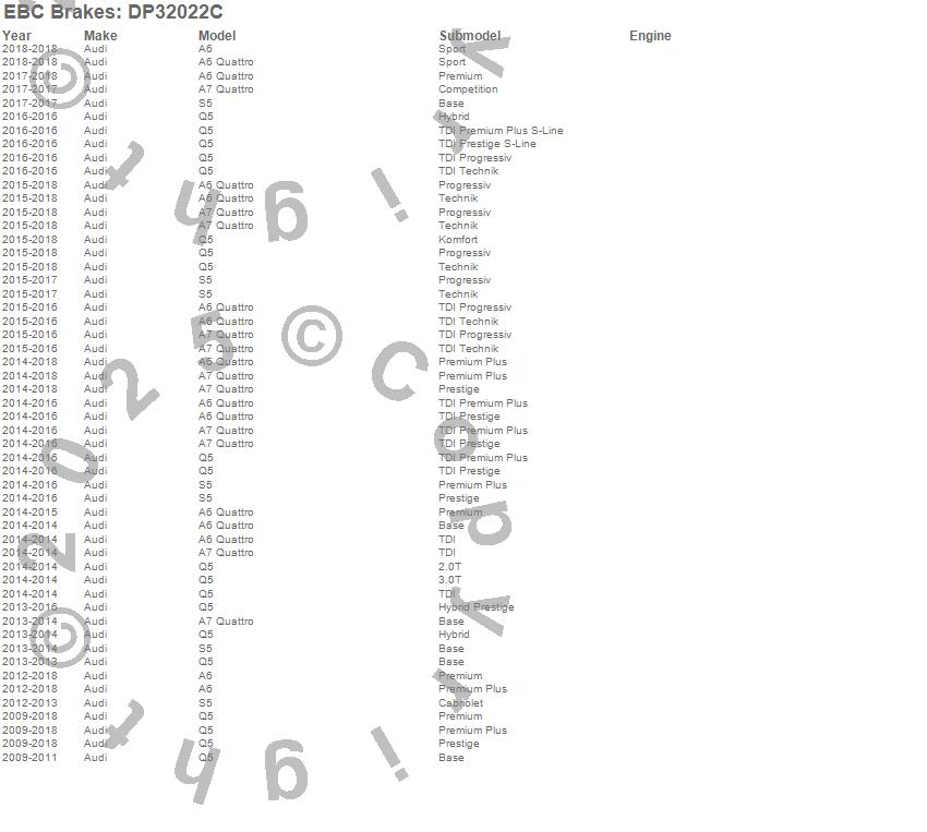 Below is an abreviated list of applications for the EBC Redstuff Ceramic Low Dust Brake Pads.