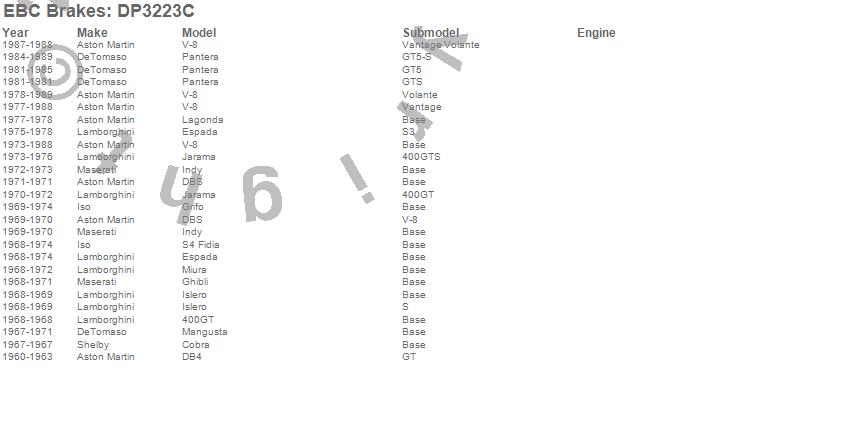 Below is an abreviated list of applications for the EBC Redstuff Ceramic Low Dust Brake Pads.