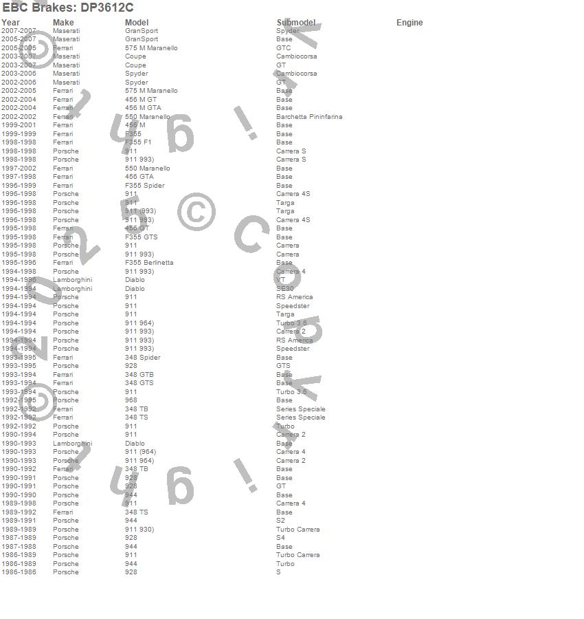 348 GTB, 348 GTS, 348 Spider, 348 TB, 348 TS, 456 GT, 456 GTA, 456 M, 456 M GT, 456 M GTA, 550 Barchetta, 550 Maranello, 575 M Maranello, 911, 928, 944, 968, Coupe, Diablo, F355 more…