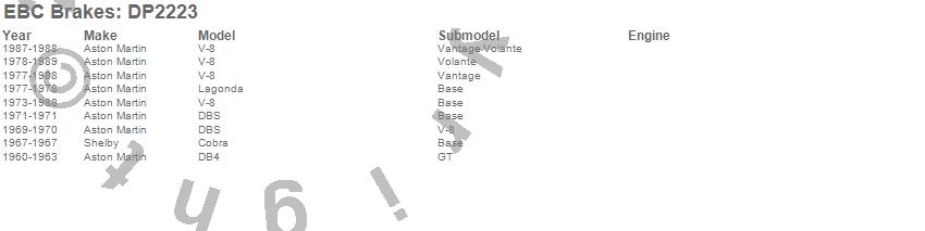 Below is an abreviated list of applications for the EBC Greenstuff 2000 Series Sport Brake Pads.