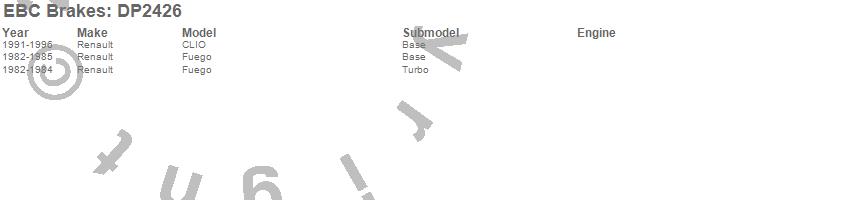 Below is an abreviated list of applications for the EBC Greenstuff 2000 Series Sport Brake Pads.