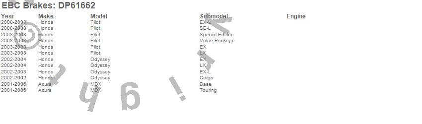 Below is an abreviated list of applications for the EBC 6000 Series Greenstuff Truck/SUV Brakes Disc Pads.