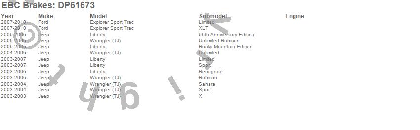 Below is an abreviated list of applications for the EBC 6000 Series Greenstuff Truck/SUV Brakes Disc Pads.