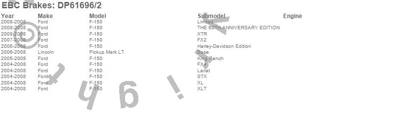 Below is an abreviated list of applications for the EBC 6000 Series Greenstuff Truck/SUV Brakes Disc Pads.
