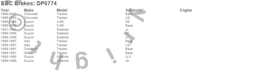 Below is an abreviated list of applications for the EBC 6000 Series Greenstuff Truck/SUV Brakes Disc Pads.