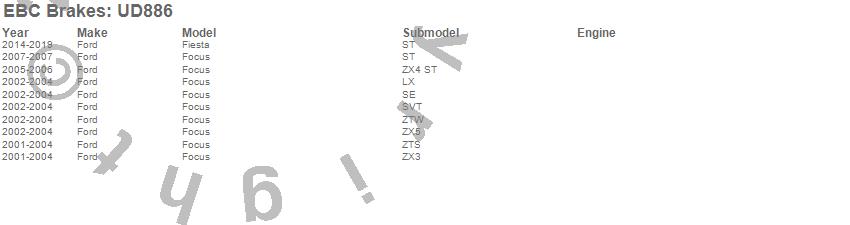 Below is an abreviated list of applications for the EBC Ultimax OEM Replacement Brake Pads.