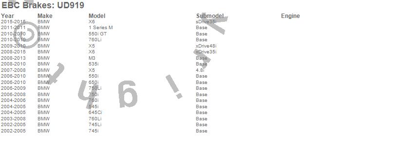 Below is an abreviated list of applications for the EBC Ultimax OEM Replacement Brake Pads. 1 Series M, 535i, 545i, 550i, 550i GT, 645Ci, 650i, 745i, 745Li, 750i, 750Li, 760i, 760Li, M3, X5, X6, BMW, 2015, 2014, 2013 more…