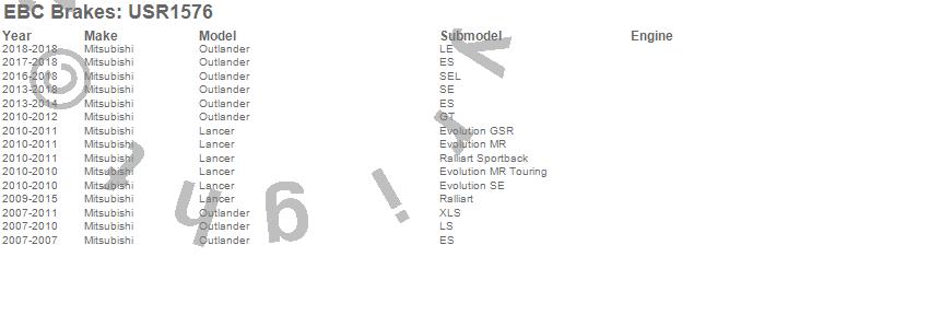 Below is an abreviated list of applications for the EBC USR Series Sport Slotted Rotor.