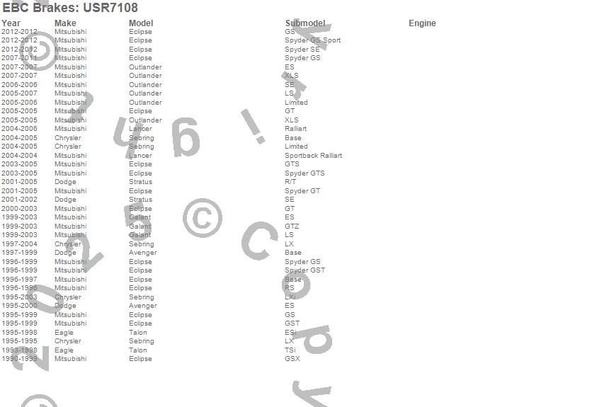 Below is an abreviated list of applications for the EBC USR Series Sport Slotted Rotor.