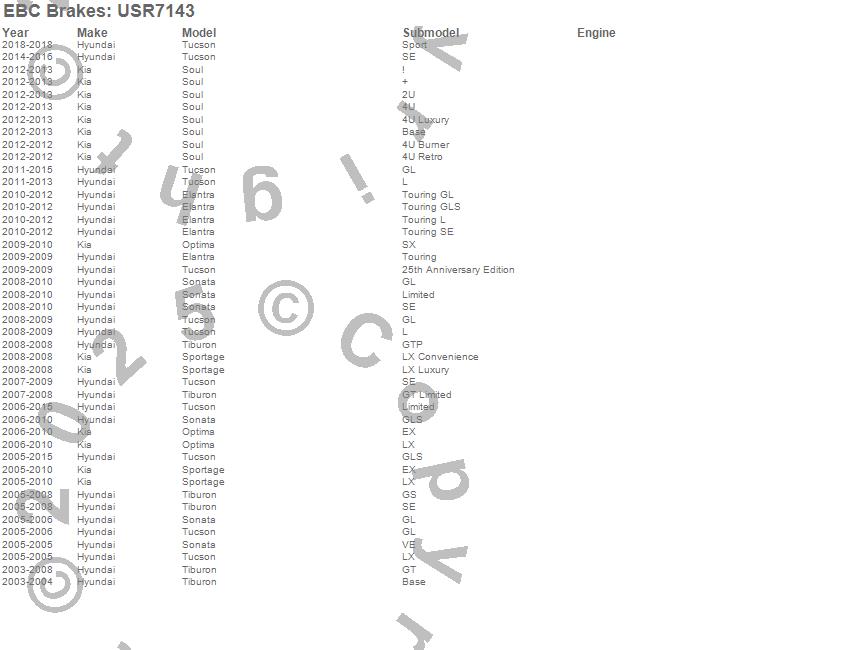 Below is an abreviated list of applications for the EBC USR Series Sport Slotted Rotor.