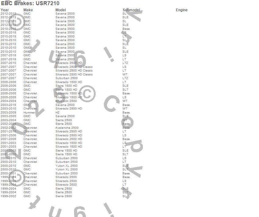 Below is an abreviated list of applications for the EBC USR Series Sport Slotted Rotor.
