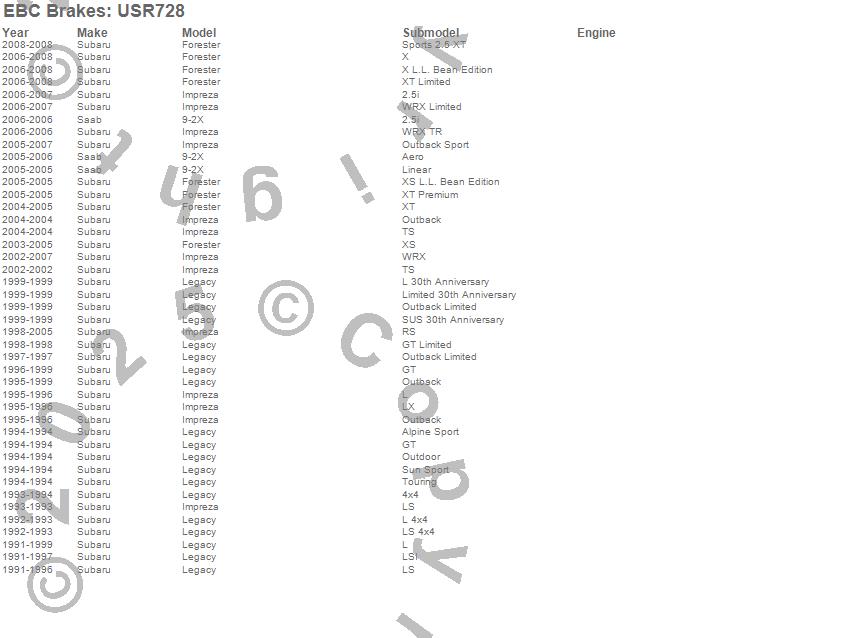 Below is an abreviated list of applications for the EBC USR Series Sport Slotted Rotor.