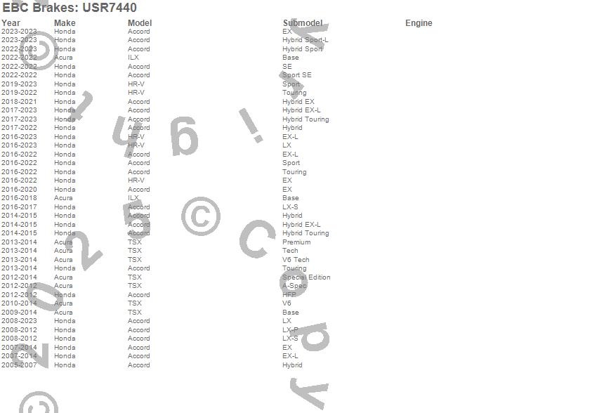 Below is an abreviated list of applications for the EBC USR Series Sport Slotted Rotor.