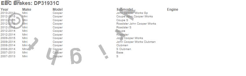 Below is an abreviated list of applications for the EBC Redstuff Ceramic Low Dust Brake Pads.
