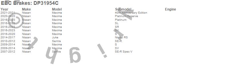 Below is an abreviated list of applications for the EBC Redstuff Ceramic Low Dust Brake Pads.