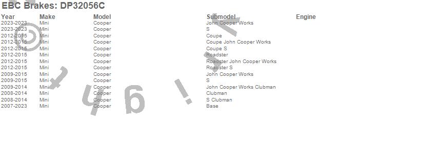 Below is an abreviated list of applications for the EBC Redstuff Ceramic Low Dust Brake Pads.