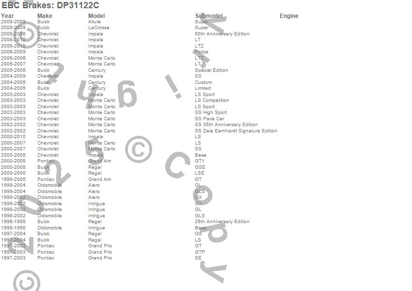 Below is an abreviated list of applications for the EBC Redstuff Ceramic Low Dust Brake Pads.