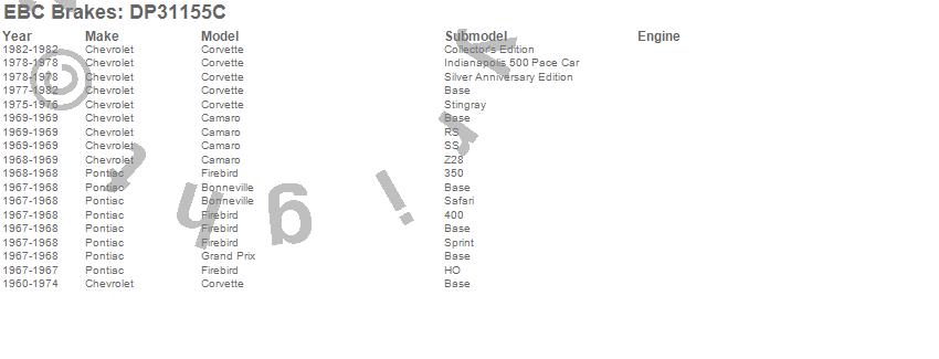 Below is an abreviated list of applications for the EBC Redstuff Ceramic Low Dust Brake Pads.