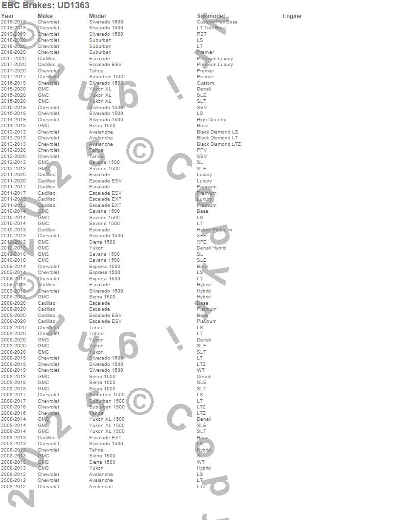 Below is an abreviated list of applications for the EBC Ultimax OEM Replacement Brake Pads.