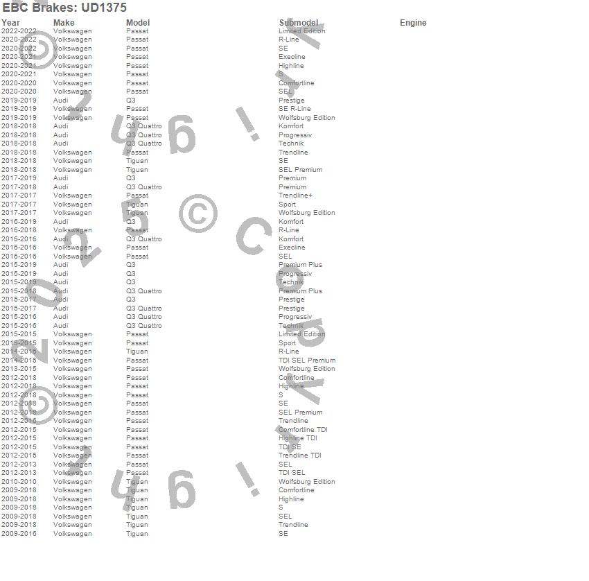 Below is an abreviated list of applications for the EBC Ultimax OEM Replacement Brake Pads.