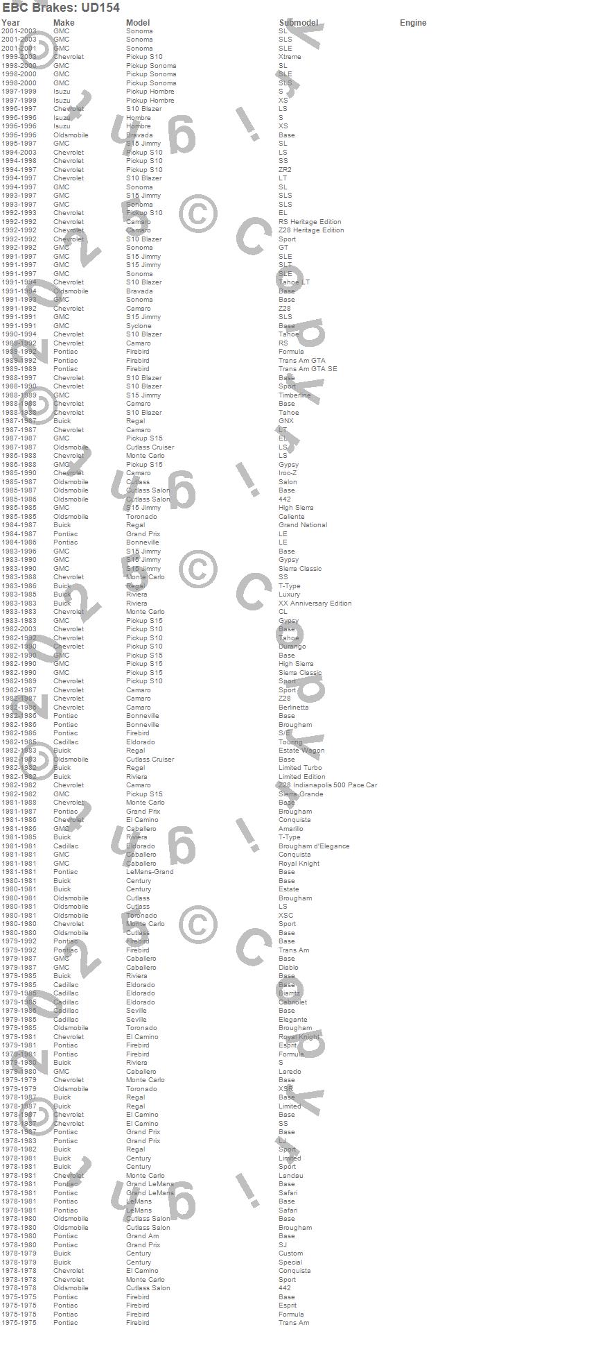 Below is an abreviated list of applications for the EBC Ultimax OEM Replacement Brake Pads.