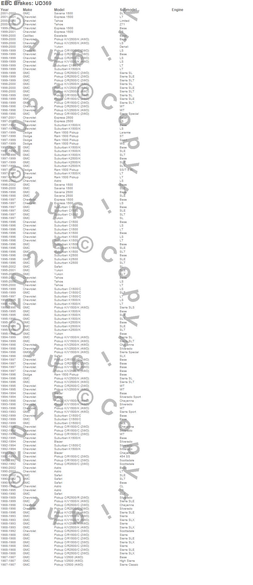 Astro, Blazer, C1500, C1500 Pickup, C1500 Suburban, C2500 Pickup, Escalade, Express 1500, Express 2500, K1500, K1500 Pickup, K1500 Suburban, K2500 Pickup, K2500 Suburban, R2500 Pickup, Ram 1500, Safari, Savana 1500, Savana 2500, Tahoe more…