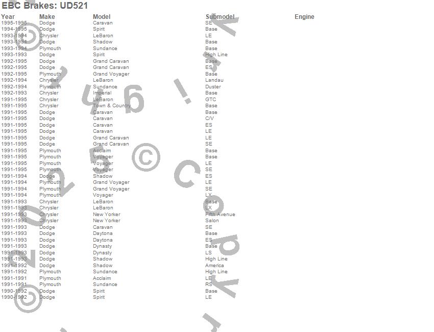 Below is an abreviated list of applications for the EBC Ultimax OEM Replacement Brake Pads.