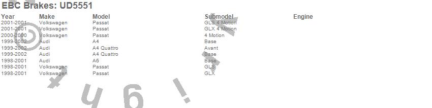 Below is an abreviated list of applications for the EBC Ultimax OEM Replacement Brake Pads.