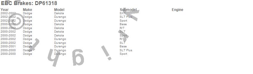 Below is an abreviated list of applications for the EBC 6000 Series Greenstuff Truck/SUV Brakes Disc Pads.