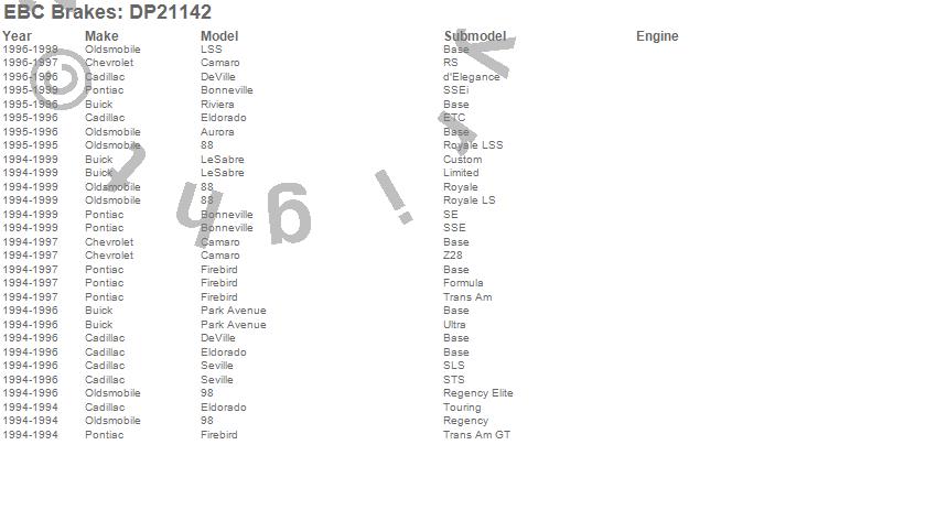 Below is an abreviated list of applications for the EBC Greenstuff 2000 Series Sport Brake Pads.