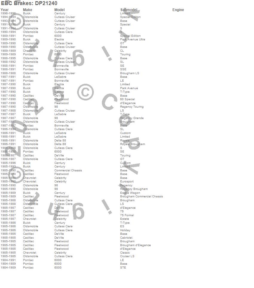 6000, 98, Bonneville, Celebrity, Century, Commercial Chassis, Cutlass Ciera, Cutlass Cruiser, Delta 88, DeVille, Electra, Fleetwood, LeSabre, Buick, Cadillac, Chevrolet, Oldsmobile, Pontiac, 1996, 1995 more...