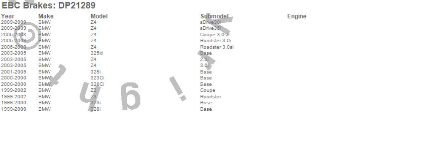 Below is an abreviated list of applications for the EBC Greenstuff 2000 Series Sport Brake Pads.