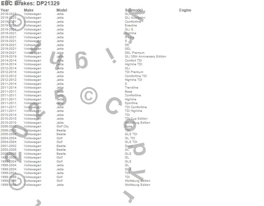 Below is an abreviated list of applications for the EBC Greenstuff 2000 Series Sport Brake Pads.