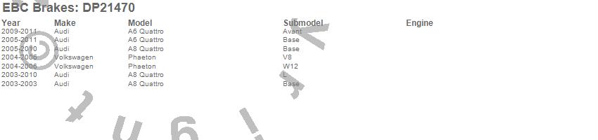 Below is an abreviated list of applications for the EBC Greenstuff 2000 Series Sport Brake Pads.