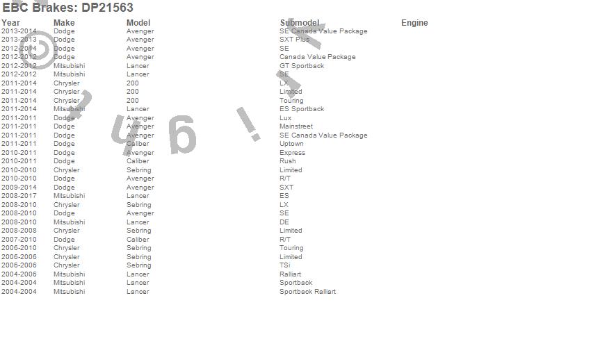 Below is an abreviated list of applications for the EBC Greenstuff 2000 Series Sport Brake Pads.