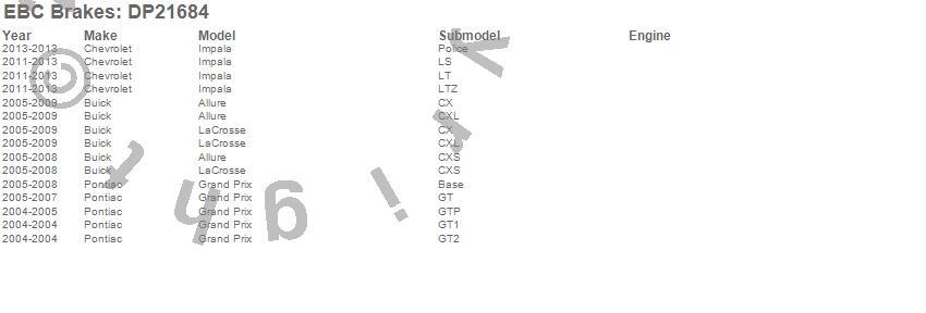 Below is an abreviated list of applications for the EBC Greenstuff 2000 Series Sport Brake Pads.