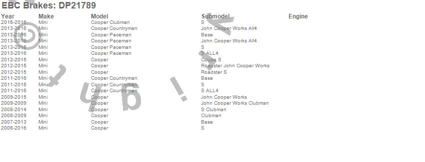 Below is an abreviated list of applications for the EBC Greenstuff 2000 Series Sport Brake Pads.