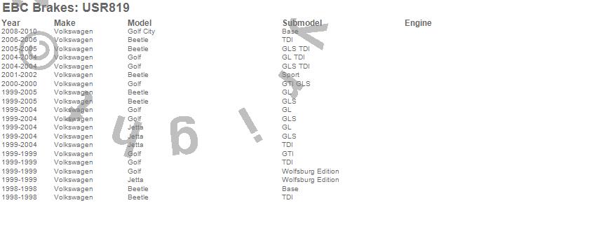 Below is an abreviated list of applications for the EBC USR Series Sport Slotted Rotor.
