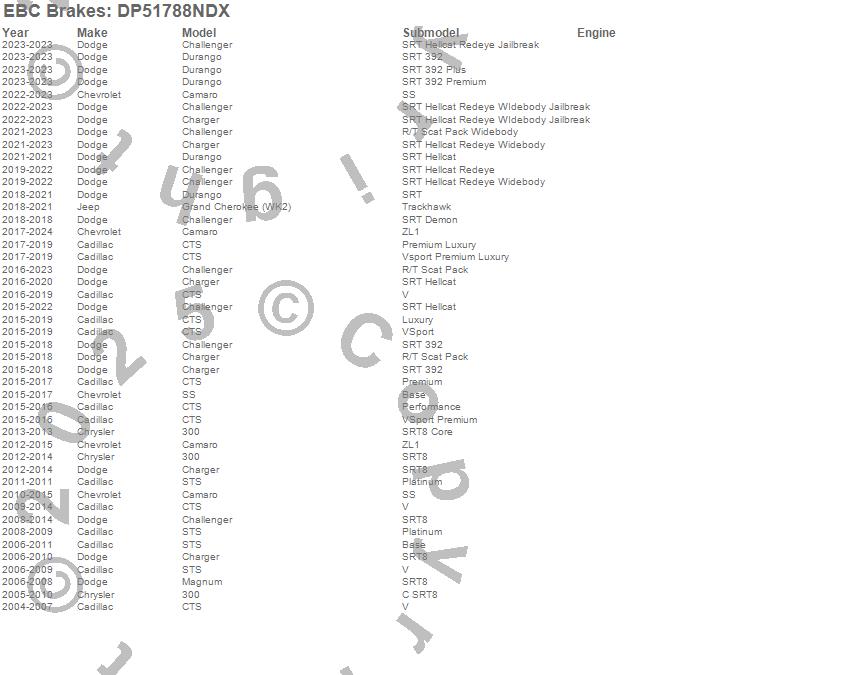Below is an abreviated list of applications for the EBC Bluestuff NDX Full Race Brake Pads.