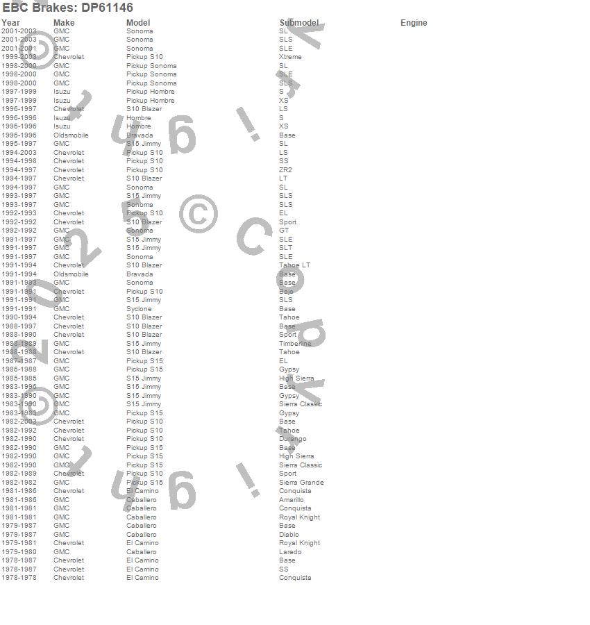 Below is an abreviated list of applications for the EBC 6000 Series Greenstuff Truck/SUV Brakes Disc Pads.