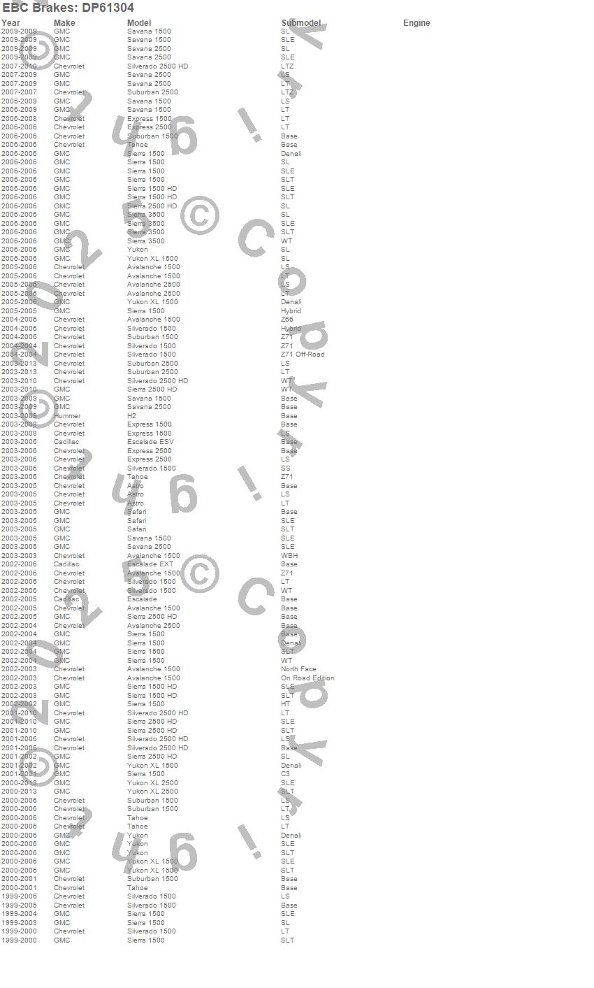 Below is an abreviated list of applications for the EBC 6000 Series Greenstuff Truck/SUV Brakes Disc Pads.