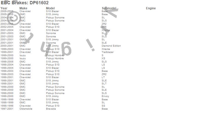 Below is an abreviated list of applications for the EBC 6000 Series Greenstuff Truck/SUV Brakes Disc Pads.