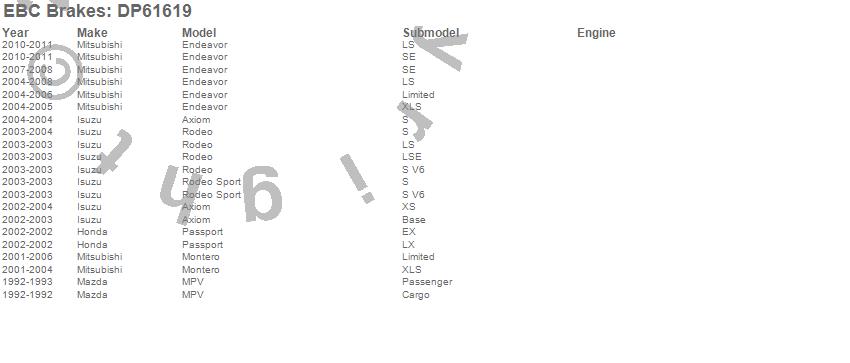 Below is an abreviated list of applications for the EBC 6000 Series Greenstuff Truck/SUV Brakes Disc Pads.